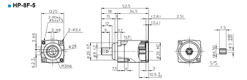 | HP-8F | 5 | 25 | 0.4 | 2.26 | 5.88 | 5000 | 52 | 47 | 0.12 |
