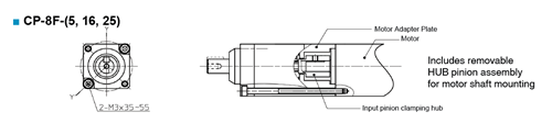 New miniature high-performance gearheads for small servomotors – Connect the new CP/HP gearhead to a small servomotor (5W-20W) to create an ultra-compact high performance servo actuator. These new gearheads are available with removable input HUB pinion assembly (CP) or standalone pinion with precision through bore (HP). They are ideally suited for semiconductor and medical applications.