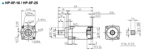 | Size | Ratio | Dimension | Rated Torque | Repeated Torque | Momentary Peak Torque | Allowable Max Speed | Allowable Radial Load | Allowable Axial Load | Mass |